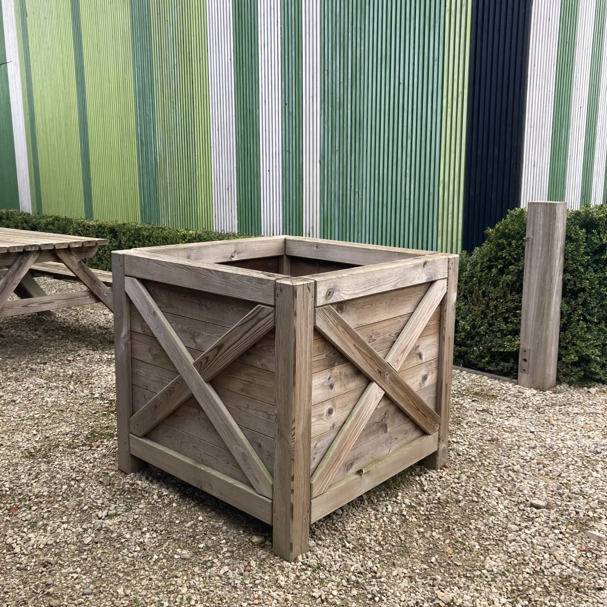 De Populus G is een robuuste plantenbak geschikt voor grotere struiken. Het geïmpregneerd hout zorgt ervoor dat u jarenlang van deze bloembak kunt genieten in de tuin. Doorheen de jaren zal de Populus G vergrijzen. Verkiest u echter een bepaalde kleur boven de natuurlijke vergrijzing, dan kunt u deze personaliseren naar uw eigen smaak. Tip: Om deze bak te vullen hebt u 490 liter potgrond nodig.