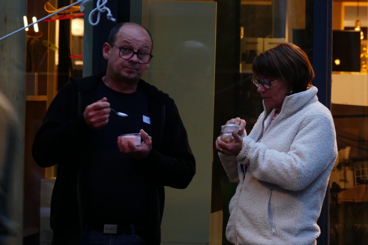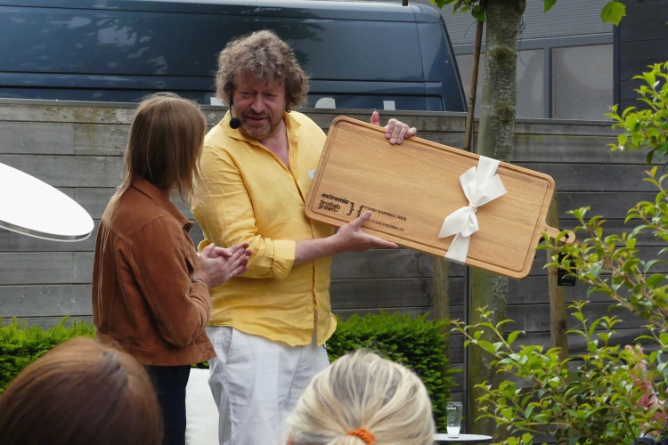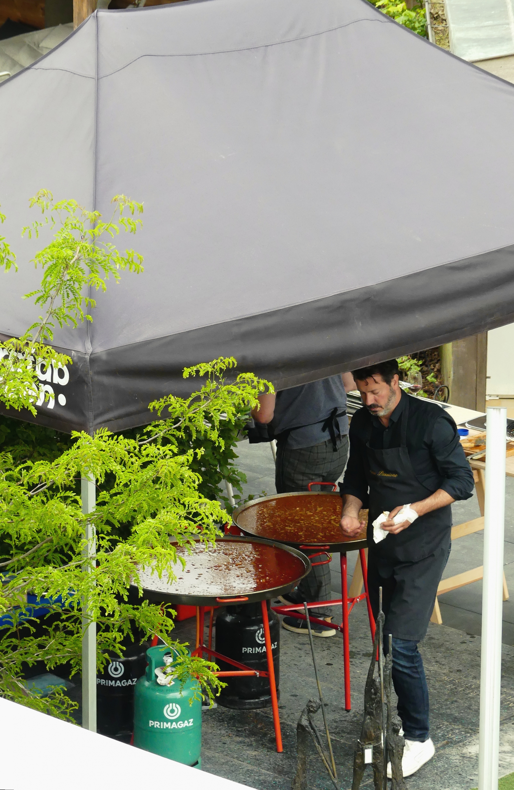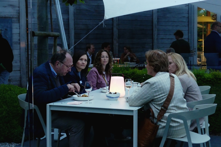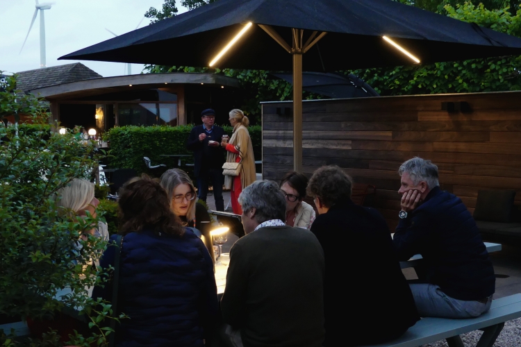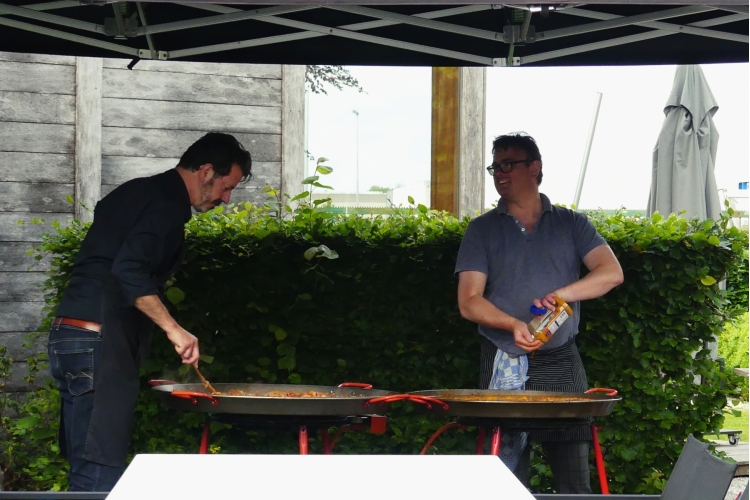 Terwijl de gasten een blik achter de schermen kregen, bereidden koks Wannes en Dieter verse paella in de tuin. De geur van de paella begon zich te verspreiden, tijd om aan te schuiven! De rest van de avond stond in het teken van ‘togetherness’ –om het in de woorden van Extremis te zeggen– Napraten en netwerken in een gezellige en gemoedelijke sfeer aan het mooie meubilair van Extremis.
