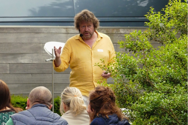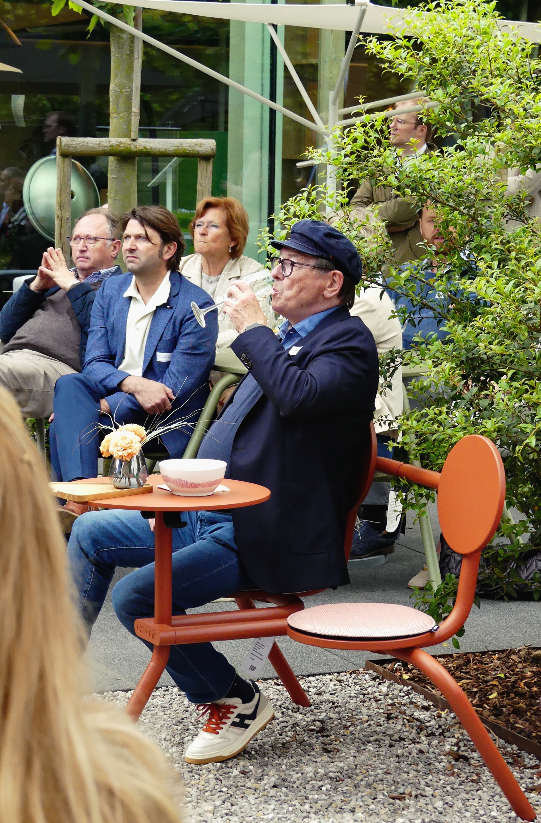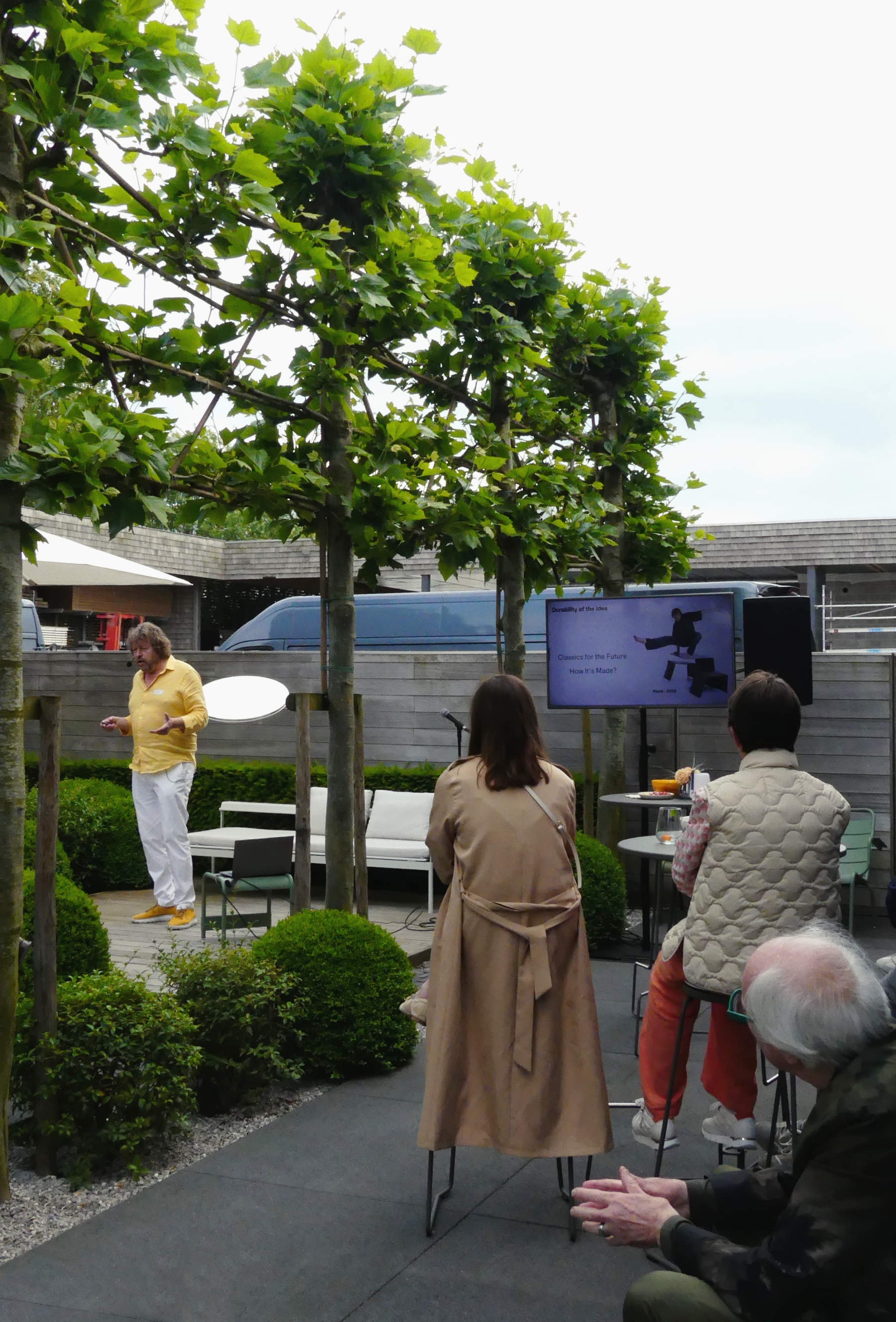 Na het welkomstdrankje leidde Dirk Wynants een inspirerende designtalk. Hij nam ons mee op een fascinerende reis doorheen de geschiedenis van de Extremis-collectie. Dirk gaf inzicht in de gedachtegang achter elk meubelstuk en deelde enkele anekdotes over het bedrijf. Zijn passie voor design en innovatie was duidelijk voelbaar en boeide het publiek van begin tot eind.