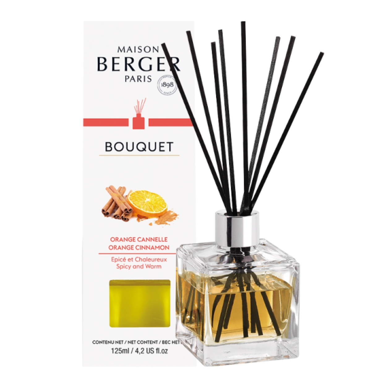 Deze parfumverspreider is reeds gevuld met 125ml huisparfum Orange de Cannelle. Dit huisparfum combineert de frisheid van citrusvruchten met de warmte van kruiden en gekonfijte vruchten.