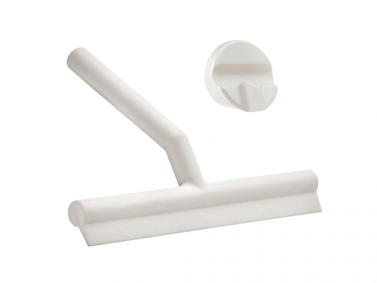 Deze witte glazenwisser is het toppunt van kwaliteit en tijdloze elegantie. Deze wisser onderscheidt zich van andere WC- en badkamer accessoires door de naadloze afwerking in silicone, het elegante ontwerp, de zachte en roestvrije vorm, en de sterke houder. Bevestig de zelfklevende houder op het glas van je douchedeur of op de tegels van je badkamer. Handig om je douche proper te houden en aangenaam om naar te kijken.