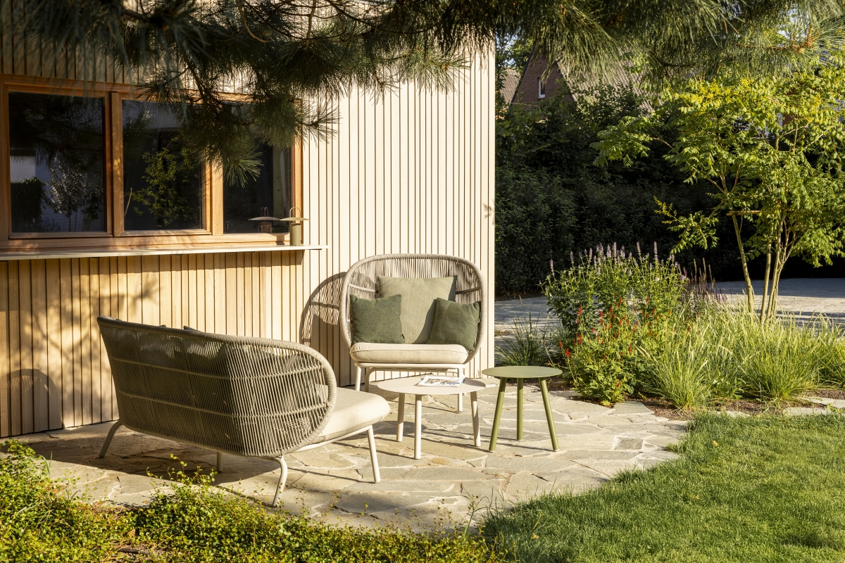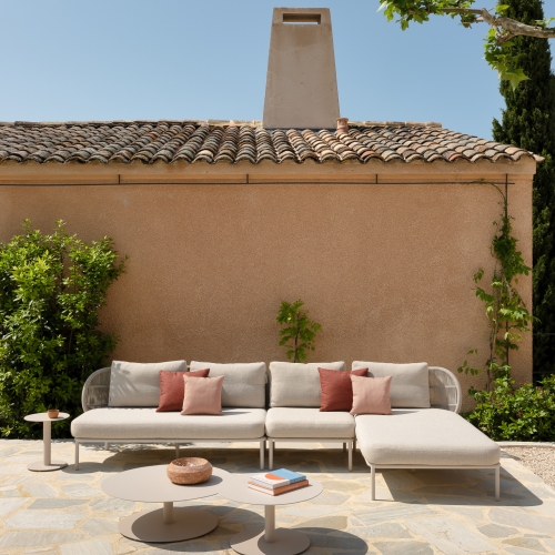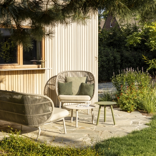 De Kodo loungecollectie van Vincent Sheppard brengt de sfeer van verre, zonnige oorden naar jouw tuin of terras. Ontworpen door Studio Segers, combineert deze outdoor sofa vakmanschap, comfort en duurzaamheid in één tijdloos ontwerp. Het zachte koord rondom geeft een subtiele, elegante uitstraling, terwijl de modulaire opstellingen en diverse kleuren je volledige vrijheid geven om jouw ideale loungeplek samen te stellen. Of je nu wilt relaxen met een boek, genieten van een zonnige middag of gasten wilt ontvangen, Kodo nodigt uit tot ontspannen en het creëren van je eigen buitenparadijs.