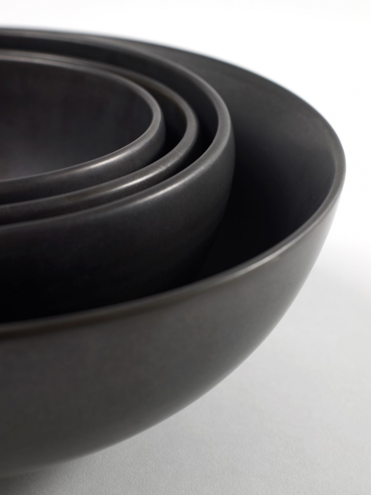 In samenwerking met Serax ontwierp Pascale Naessens de ‘Pure’ collectie die zich onderscheidt door haar pure vormen en kleuren. De zwarte kom (XL) heeft een uniek design en zorgt voor een authentieke look op tafel.