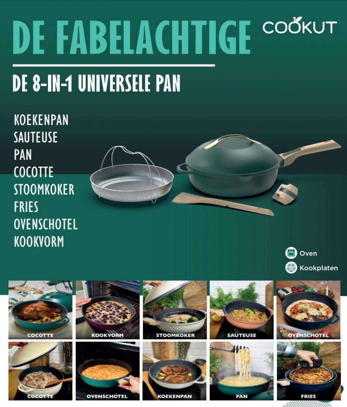 - Past op alle vuren (ook inductie) en in de oven tot 240°C