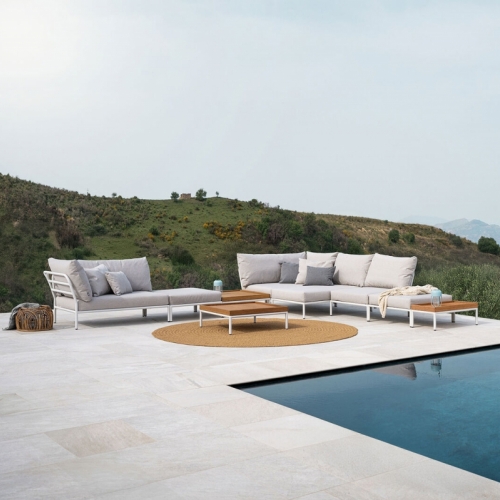 De Level loungeset van het Deense merk Houe is een modulair design met een hedendaagse, ontspannen uitstraling. De ultracomfortabele kussens nodigen uit tot urenlang loungen en creëren een warme, ongedwongen sfeer. Dankzij de losse elementen stel je de Level collectie volledig samen op maat van jouw terras of tuin. Het slanke frame in combinatie met de nonchalante kussens zorgt voor een perfect uitgebalanceerd geheel waarin comfort en Scandinavische elegantie samenkomen.