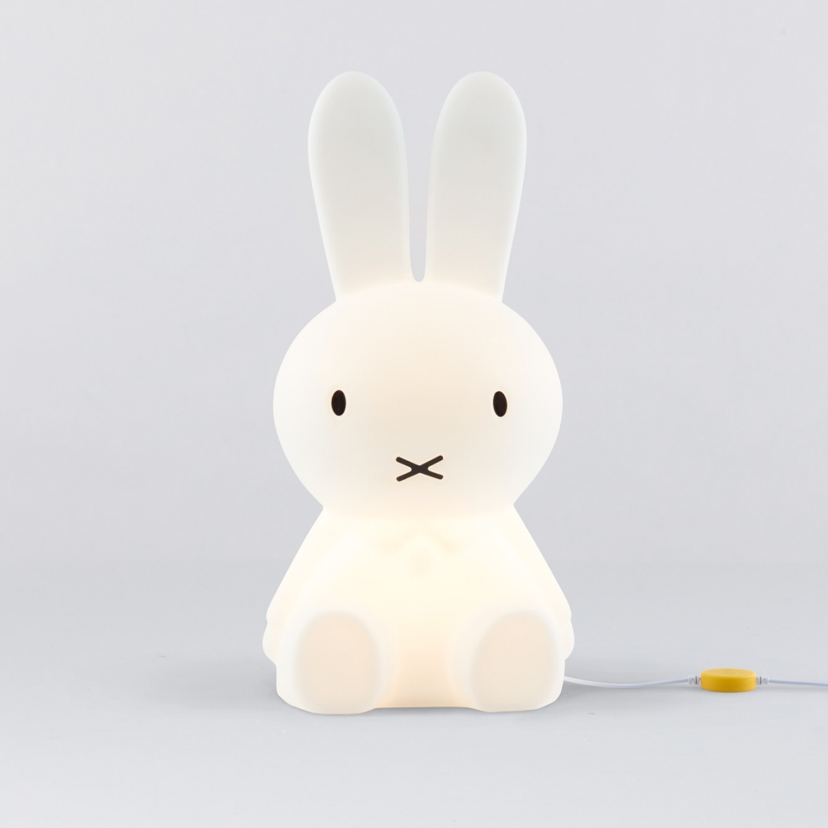 Dit is onze klassieke Nijntje lamp in het large formaat, de Nijntje lamp van 50cm. Ze brengt design naar de kinderkamer en nostalgie aan designliefhebbers. Gebruik de touch dim knop op het snoer om één van de 6 dimstanden te kiezen. Nijntje is fijn gezelschap en brengt sfeervol licht, perfect om knus een boek bij te lezen. De laagste dimstand, de nachtmodus, schijnt een heel klein lichtje. Speciaal om de hele nacht aan te laten staan.