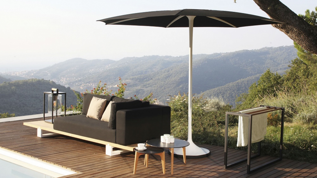 Palma is de eerste automatische parasol binnen de markt. Het mechanisme is verwerkt in de mast waardoor je de parasol met gemak kan openen en terug sluiten. De parasol heeft een diameter van 300 cm en heeft heel wat mogelijkheden qua kleuren (zowel mast als doek). Let ook op de parasolvoet. Deze gaat naadloos over in de parasolmast, en kan op de rubberen ring makkelijk gedraaid worden over terras of gras.