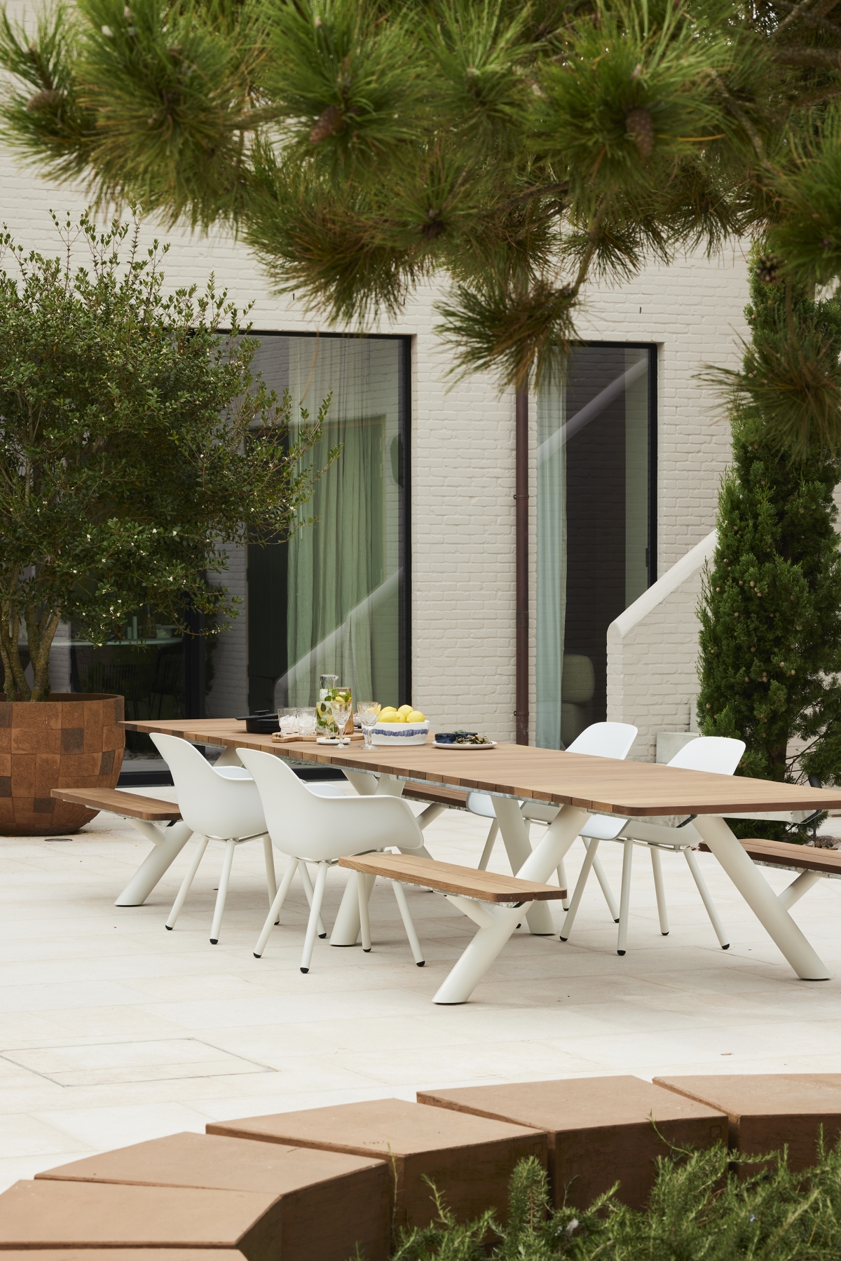 De Panigiri – Griekse vertaling van ‘samenkomen’- is de centrale plek bij uitstek waar betekenisvolle ontmoetingen plaatsvinden. Ontdek de ultieme veelzijdigheid van deze tuintafel, een meesterlijke samensmelting van functionaliteit en stijl. De tafel is volledig aanpasbaar aan jouw wensen. Of je nu kiest voor stoelen, een combinatie van stoelen en banken, of enkel banken. Met de Panigiri creëer je jouw ideale setting voor onvergetelijke samenkomsten. Beleef het nu!