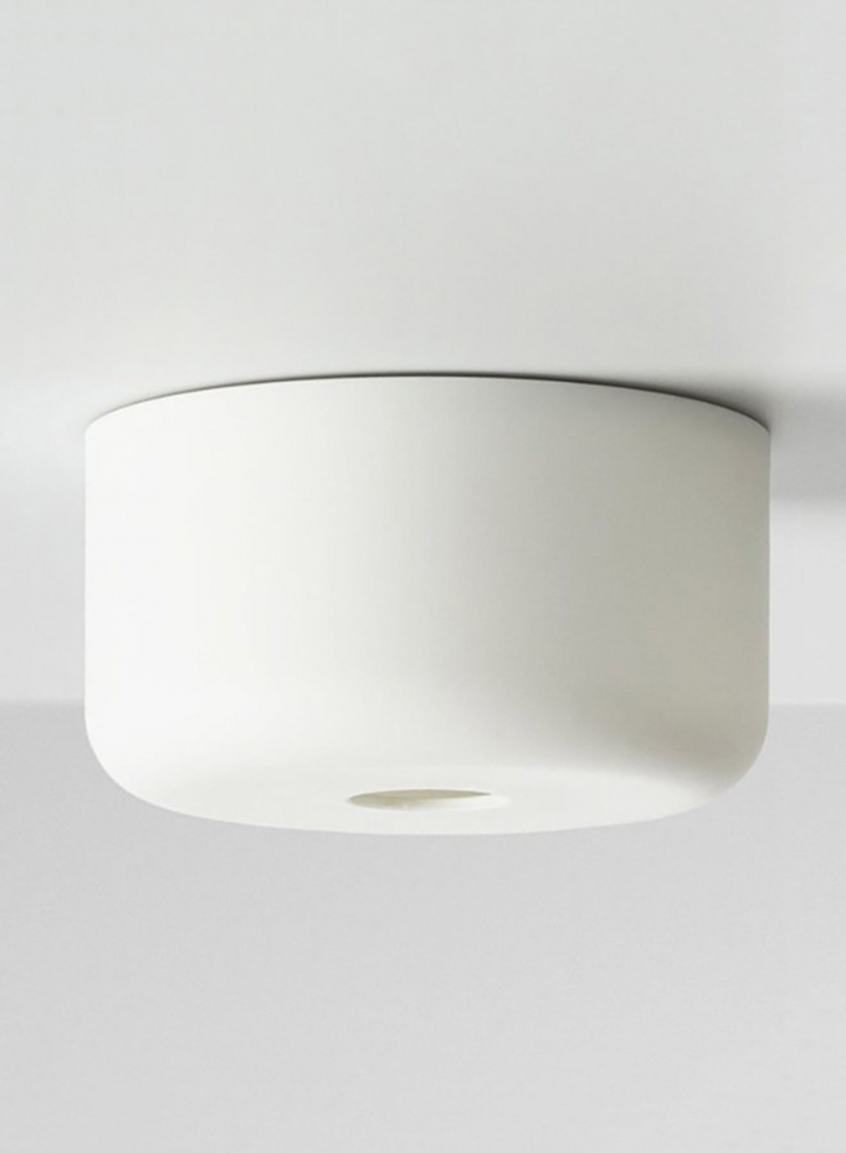 Wit afdekkapje om de draden van meerdere hanglampen, bv. de E27 van Muuto, netjes tegen het plafond te laten verdwijnen.