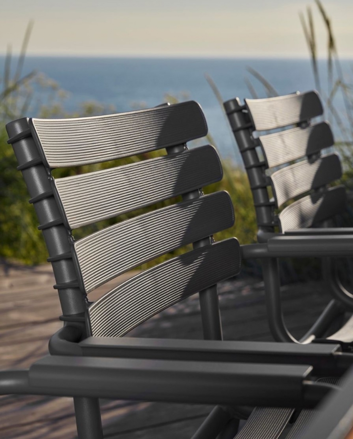 De Reclips armstoel van Houe bestaat, zoals de naam al doet vermoeden, uit brede kunststof lamellen die op een frame zijn geklikt. Omdat de helft van de stoel bestaat uit kunststof is het model heel erg licht. De lamellen zijn gemaakt van Deens huishoudelijk afval en worden geproduceerd op een innovatieve wijze.