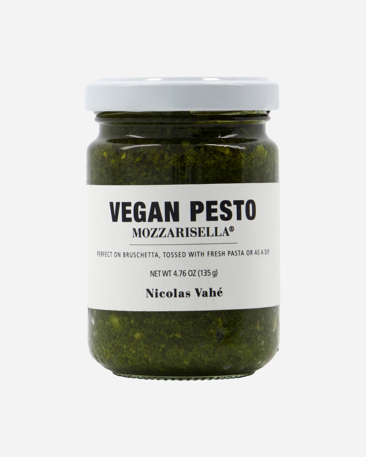 Maak kennis met de vegan pesto van Nicolas Vahé. Gemaakt met mozzarella op basis van rijst. De rijke mix van olijfolie, pijnboompitten en cashewnoten zorgt voor een zachte en romerige textuur. Of je nu veganist bent, zuivelvrij eet of gewoon iets nieuws wilt proberen. Onmisbaar op een tapasplank, maar ook in pastagerechten en groentenschotels onmisbaar!